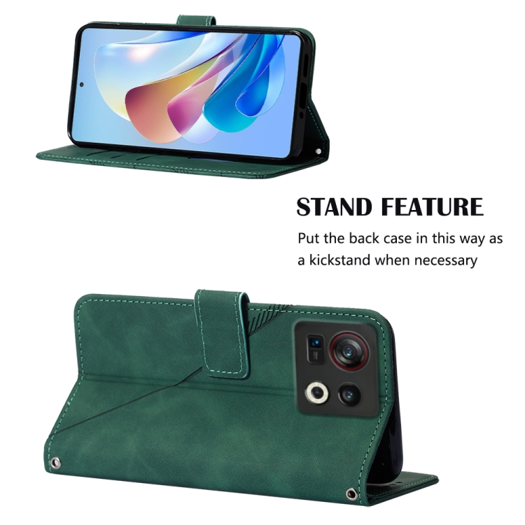 Funda de Cuero para ZTE Nubia Z40S Pro Crossbody 3D con Tapa en Relieve (Verde Oscuro)