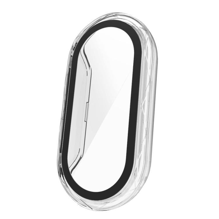 Película de vidrio templado con textura de nido de pájaro para Xiaomi Smart Band 9/9/8 NFC, funda de PC integrada (blanco transparente)