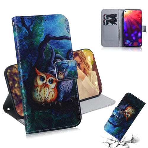 Funda de Cuero con Tapa Horizontal Huawei Honor View 20 con Soporte y Ranuras (Búho)