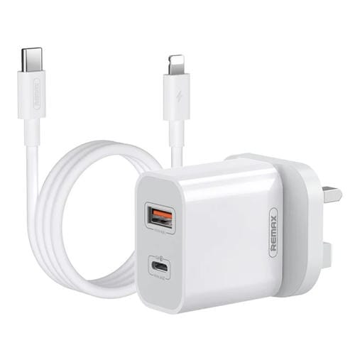 Cargador rápido Remax Rp-U68 20W Usb y Usb-C/Type-C interfaz dual enchufe Reino Unido (Blanco)