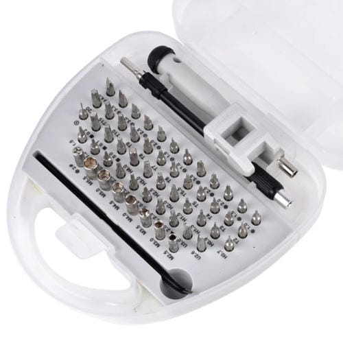 El Set Destornillador 58 en 1 fabricado en acero de Vanadio Cromado es una herramienta diseñada para la reparación y desensamblaje de Teléfonos Móviles y otros dispositivos electrónicos. Este Conjunto incluye una amplia variedad de puntas que permiten adaptarse a múltiples operaciones Técnicas, facilitando el desmontaje y montaje de componentes internos con precisión. Su mango ergonómico optimiza el par de torsión para un manejo cómodo y eficiente, mientras que la varilla de extensión Flexible proporciona acceso a espacios reducidos o de difícil alcance. Además, cuenta con un magnetizador ajustable para incrementar o disminuir el magnetismo de las puntas, mejorando la manipulación de tornillos pequeños. Este set es compatible con diversos modelos y marcas de dispositivos Móviles, siendo una solución integral para técnicos y usuarios que reparan por cuenta propia.