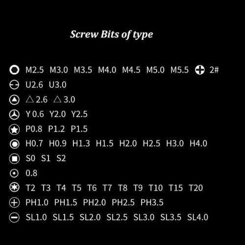El set incluye una variedad de puntas que cubren la mayoría de tornillos utilizados en dispositivos Móviles, por lo que es compatible con una amplia gama de modelos y marcas. -