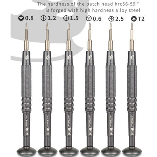 La Herramienta de tornillo Mechanic iMini Series, modelo Serie T2, es un kit especializado diseñado para la Reparación precisa de Teléfonos Móviles, gafas, relojes y otros dispositivos que requieren manipulación de tornillos pequeños. Este conjunto profesional incluye destornilladores con cabezales fabricados en aleación de acero forjado de alta dureza (HRC56-59), que garantizan durabilidad y resistencia al desgaste durante el uso continuado. Su diseño incorpora un mango antideslizante con malla delgada para un agarre seguro y cómodo, además de un cabezal magnético que facilita la sujeción de tornillos, evitando pérdidas durante el desmontaje. La rotación de rodamientos de 360 grados permite un funcionamiento suave y eficiente, optimizando el tiempo y esfuerzo en tareas de mantenimiento y Reparación. Este kit es compatible con una amplia variedad de dispositivos electrónicos y objetos de precisión, siendo una Herramienta esencial para Técnicos y usuarios que reparan por cuenta propia.
