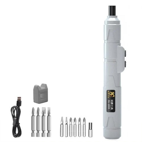 El Juego de 12 destornilladores eléctricos de precisión tipo bolígrafo está diseñado para usuarios que reparan por cuenta propia dispositivos electrónicos pequeños como Teléfonos Móviles y Relojes. Este Conjunto incluye herramientas eléctricas compactas con varilla de extensión magnética que permite un reemplazo rápido y seguro de las puntas. Equipado con una Batería de litio reCargable de 1100 mAh y una interfaz de Carga Tipo-C/USB-C, ofrece una velocidad de rotación de hasta 250 rpm y un par máximo de 1,2 N/M, garantizando eficiencia y control en tareas delicadas. Su Carcasa de ABS proporciona durabilidad y ligereza, facilitando el manejo en reparaciones de precisión.