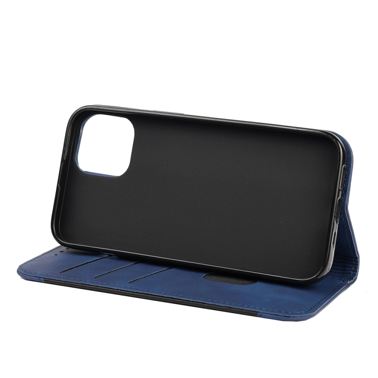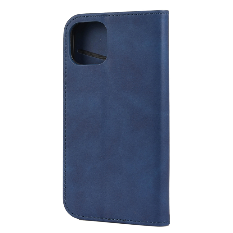 Caja de Teléfono de Cuero para iPhone 12 Elevando la Piel (Azul)