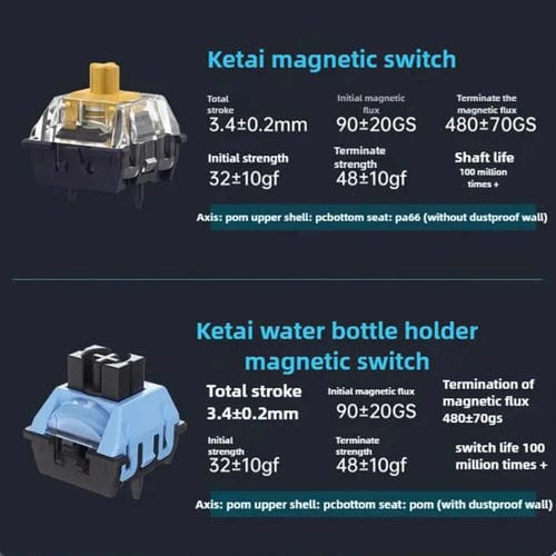 • Compatible con ejes magnéticos Ketai Aquarius, TTC Magneto, Gateron Magnetic White, Magnetic Jade y otros ejes magnéticos descendentes de polo N