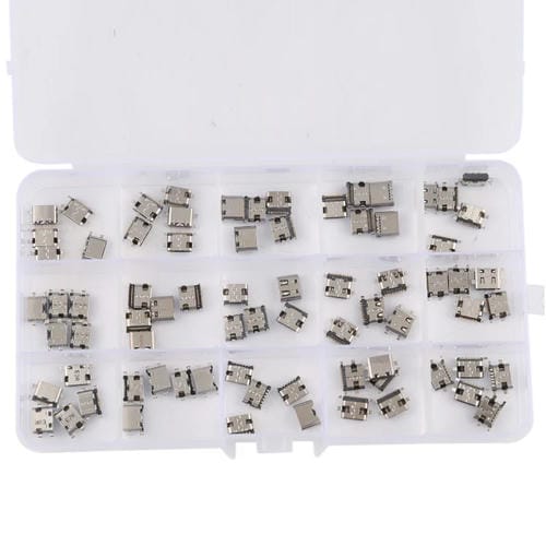 El set de 75 Piezas de Conectores USB Tipo C incluye variantes de 6, 12, 14, 16 y 24 pines, diseñado para dispositivos de marcas como Huawei, Samsung y Xiaomi (2021). Este Conjunto está orientado a usuarios que reparan por cuenta propia y técnicos especializados que requieren Conectores precisos para la sustitución o reparación de Puertos de Carga en smartphones y otros dispositivos compatibles. Cada Conector cumple la función principal de restablecer la Conexión de Carga y transferencia de datos, asegurando un rendimiento óptimo tras la reparación. La variedad de pines permite compatibilidad con múltiples modelos y versiones, facilitando la adaptación a diferentes configuraciones internas de los dispositivos mencionados.