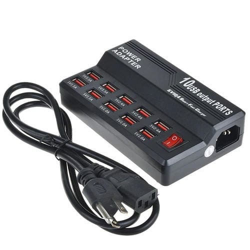 Base de carga rápida W-838 60W 10 Puertos USB cargador inteligente escritorio AC100-240V (Negro)