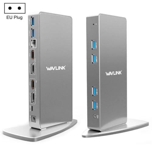 - 1x Adaptador Hub Wavlink WL-UG69DK7 de Aleación de Aluminio para Estación de Acoplamiento Universal Tipo C para Portátiles (Enchufe UE)