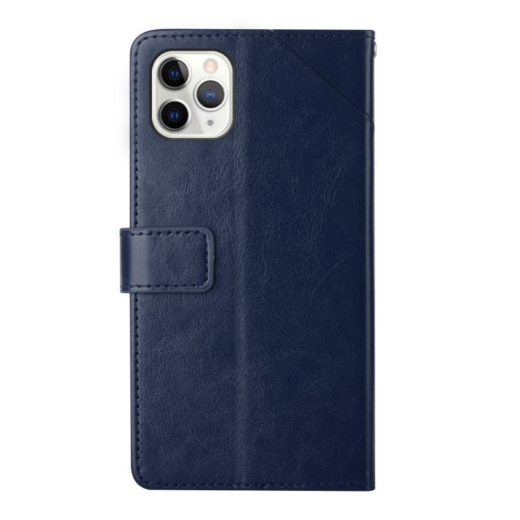 Funda de teléfono Y Costura iPhone 11 Pro Max tapa horizontal con soporte y tarjetero (Azul)