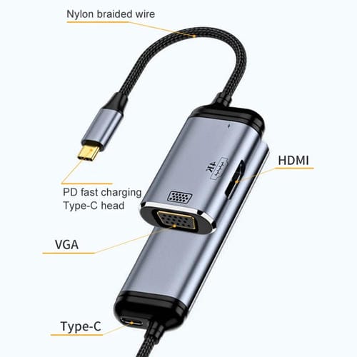 • 1x Cable Adaptador de Audio 3 en 1 Y001 USB-C/Tipo-C a VGA, HDMI y USB-C/Tipo-C
