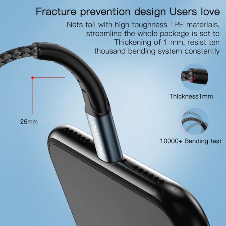 Cable de carga Yesido Ca64 USB-C a 8 Pines 2.4A 1,2 m