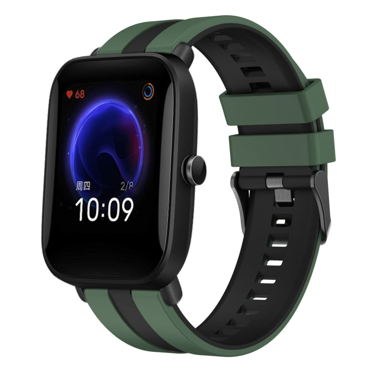 Correa de Silicona Deportiva para Amazfit Pop 20mm (Verde Oliva + Negro)
