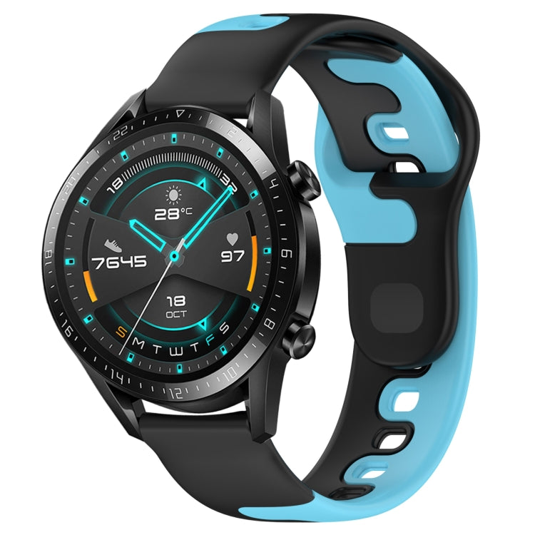 Para Huawei Gt2 46mm 22mm Correa de Reloj de Silicona de Doble Color (Negro + Azul)