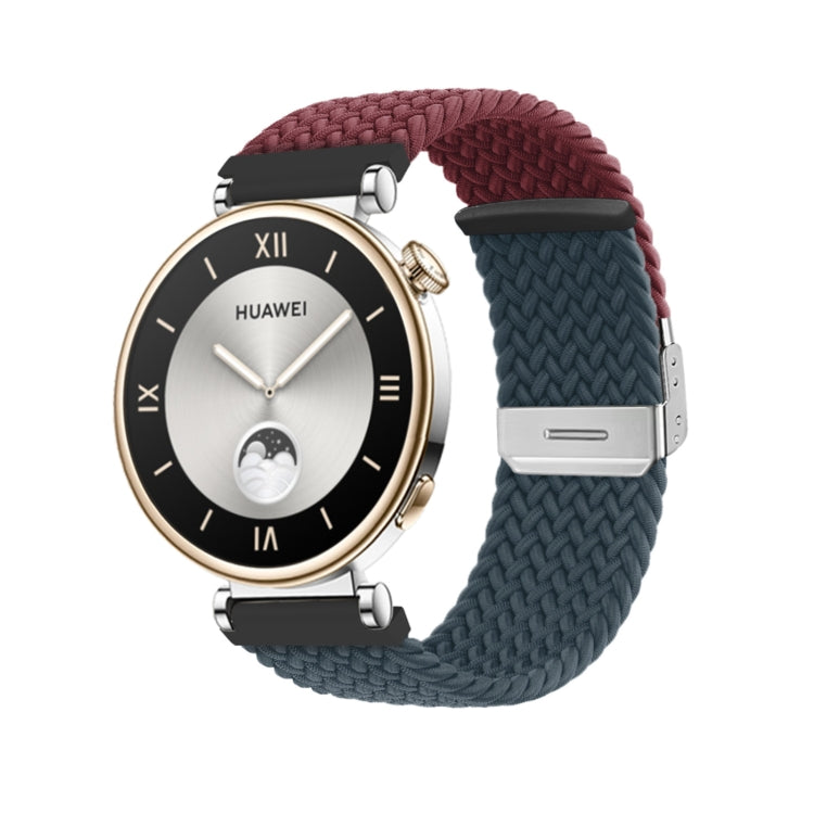 For Huawei Watch GT4 41mm Braided Nylon Watch Band with Built-in Buckle (Wine Red + Deep Blue)