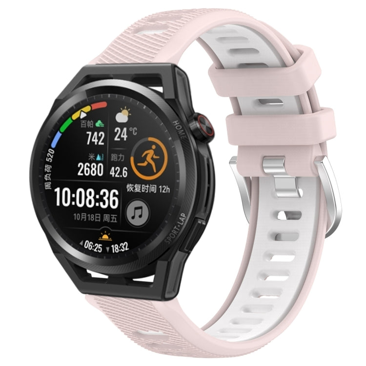 Correa de Silicona para Huawei Watch GT Runner 22mm Deportes con Hebilla de Acero (Rosa + Blanco)