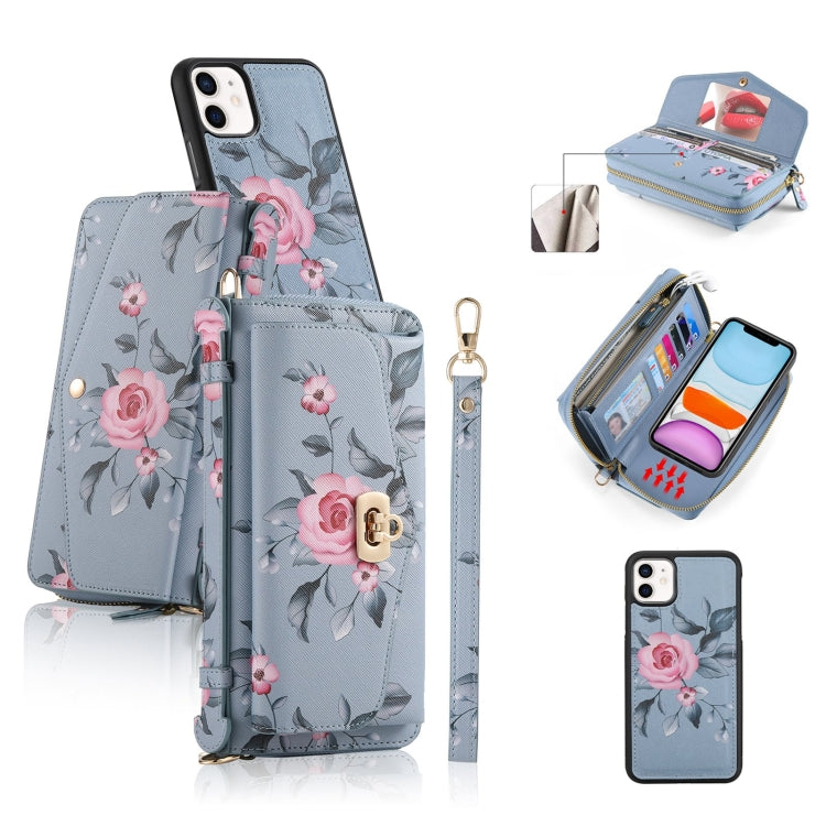 Funda de Cuero con Cremallera Multifuncional para iPhone 11 Pola Flower (Azul Cielo)