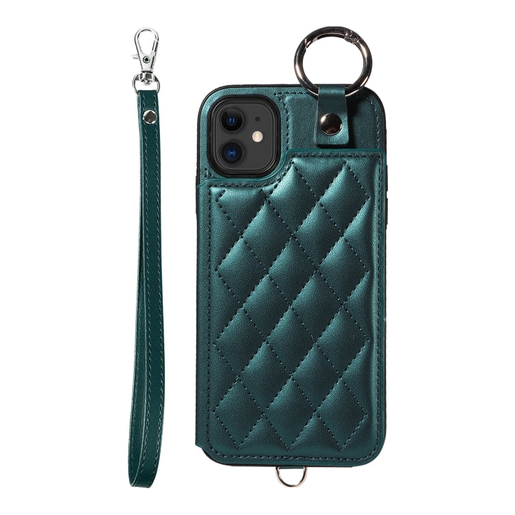Estuche para Teléfono iPhone 11 con Bolsa para Tarjetas Textura Rómbica y Cordón Corto (Verde)
