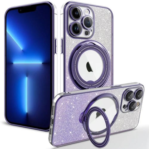 Funda para Teléfono iPhone 13 Pro Rotación Magsafe Holder Gradient Glitter TPU (Negro)