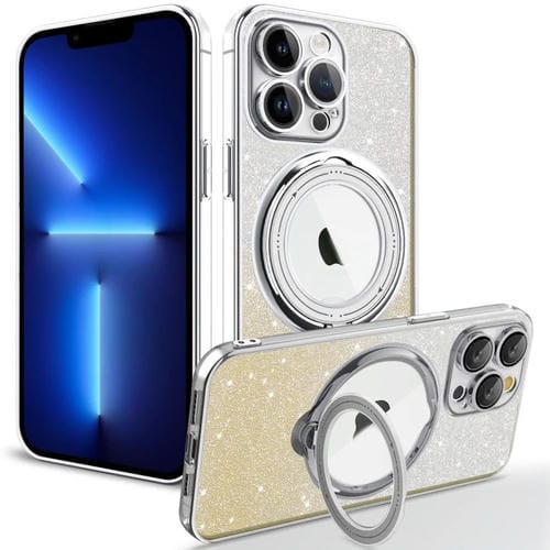 Funda TPU Purpurina Degradada Soporte Magsafe Giratorio iPhone 13 Pro (Dorada)
