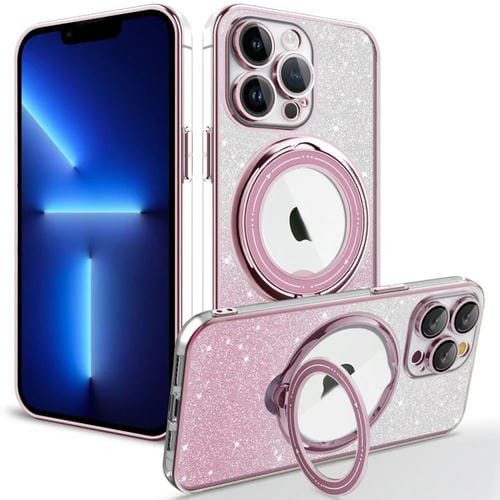Funda TPU con Purpurina Degradada y Soporte Magsafe Giratorio para iPhone 13 Pro (Rosa)