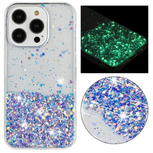 For iPhone 13 Pro Noctilucent Glitter Powder TPU Phone Case with Clear Frame (Blue)