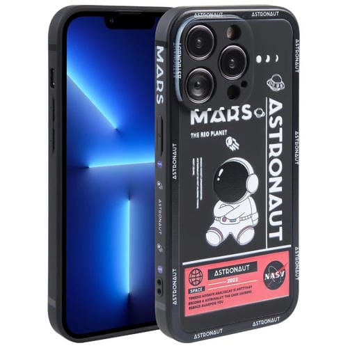 Funda de teléfono para iPhone 13 Pro Patrón de Astronauta Borde Recto Silicona (Negro)