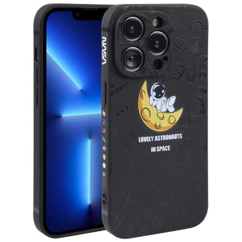 Funda de teléfono iPhone 13 Pro Patrón de Astronauta Borde Recto Silicona (Negro)