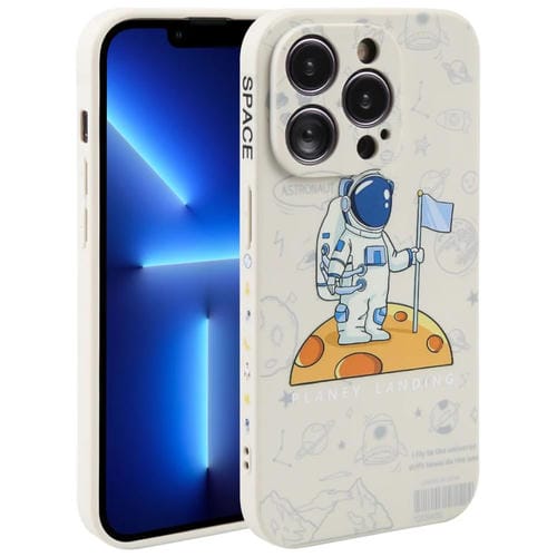 Funda de teléfono iPhone 13 Pro Patrón de Astronauta Borde Recto Silicona (Blanco)