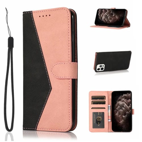 Funda de Teléfono iPhone 13 Pro Cuero con Costuras de Dos Colores (Oro Rosa Negro)