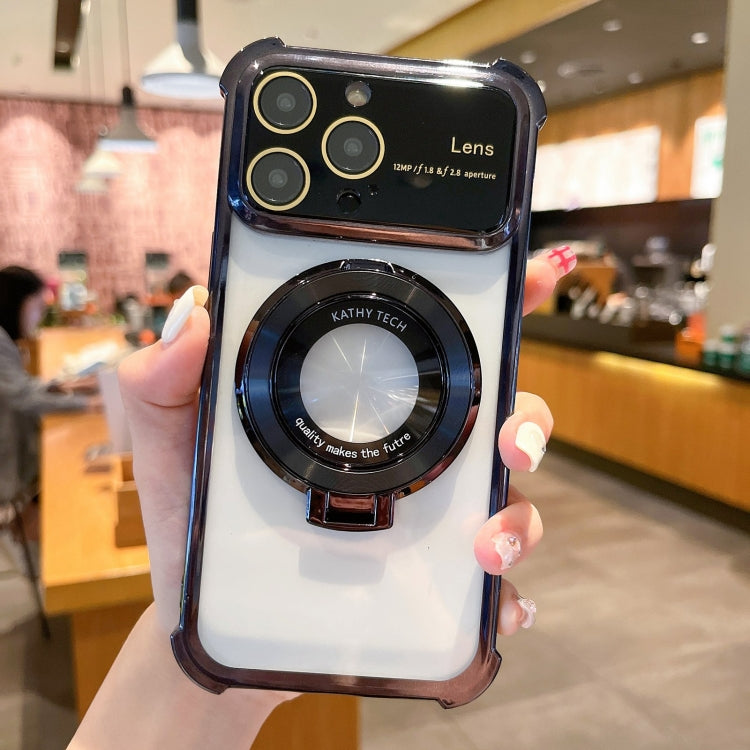 For iPhone 15 Pro Max MagSafe Holder Shockproof TPU Phone Case with Lens Film (Blue)