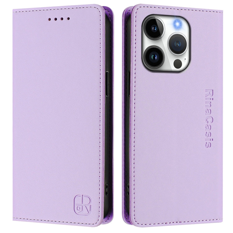 Funda de Cuero Rc01 para iPhone 16 Pro Max con Doble Pliegue y Succión Magnética (Morado Claro)