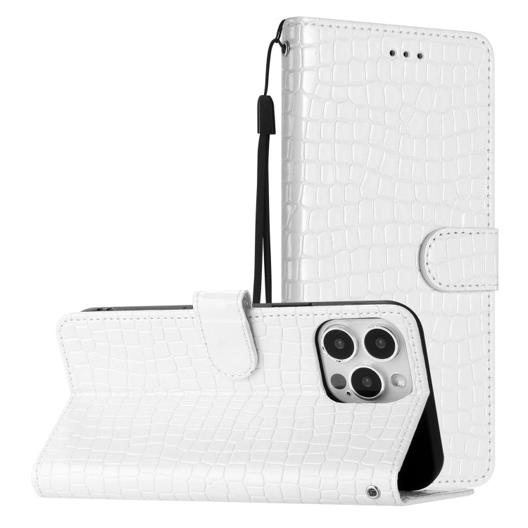 Funda de Piel con Tapa Horizontal Textura de Cocodrilo para iPhone 16 Pro Max (Blanca)