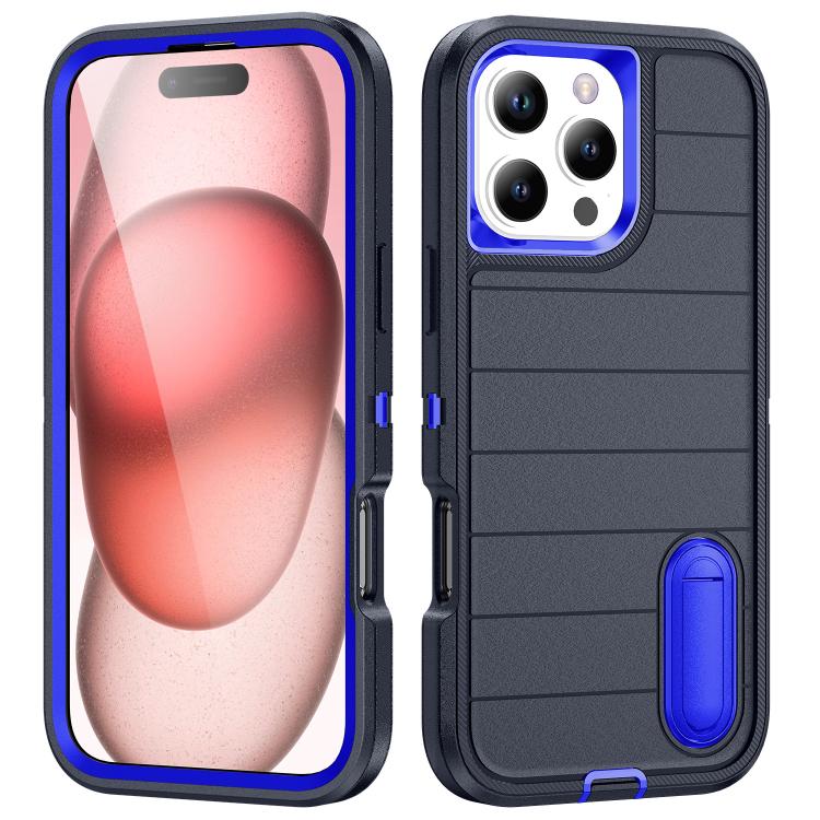 Funda de Silicona y PC Defender Gen2 para iPhone 16 Pro Max con Soporte (Azul Oscuro)