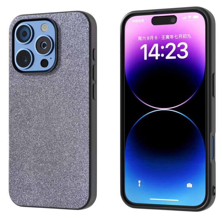 Funda para teléfono iPhone 16 Pro Max a prueba de golpes con marco negro y purpurina (Negro)