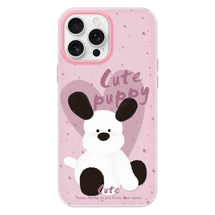Funda híbrida TPU Policarbonato iPhone 16 Pro Max Tacto Sedoso (Cachorro con Manchas Blancas)