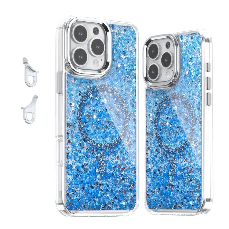 Funda de Teléfono TPU Magnética Magsafe con Purpurina Epoxi para iPhone 16 Pro Max (Azul)
