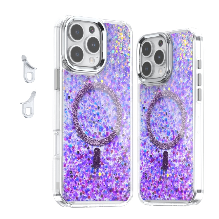 Funda de Teléfono TPU Magnética Magsafe con Purpurina Epoxi para iPhone 16 Pro Max (Morado)