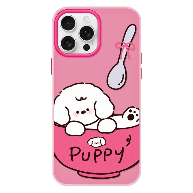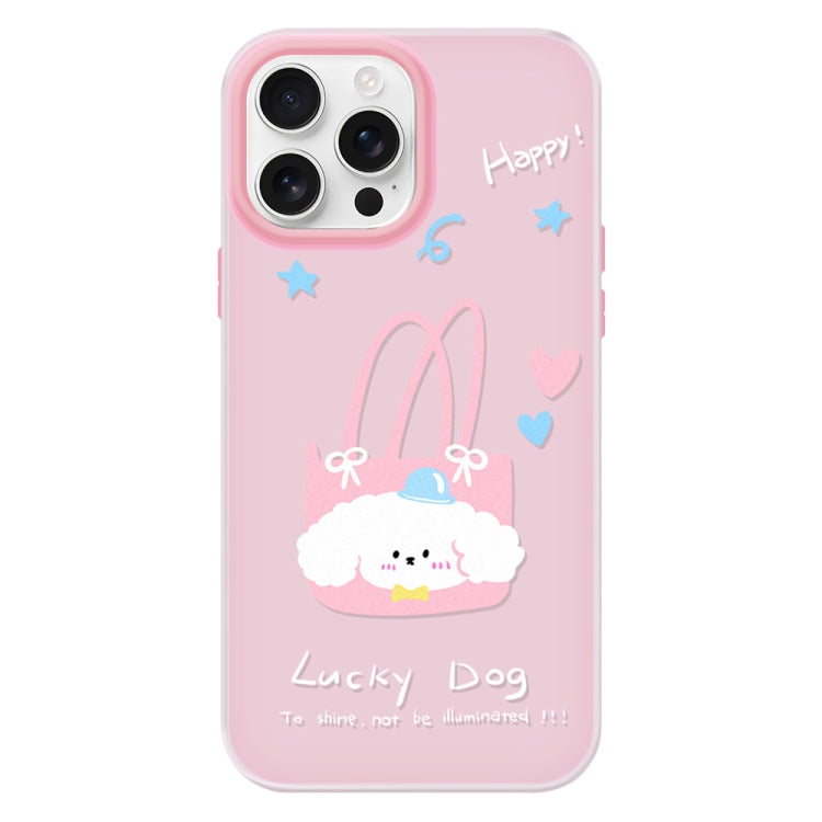 Funda híbrida TPU y Policarbonato iPhone 16 Pro Max Bolso de Mano Perro (Rosa)