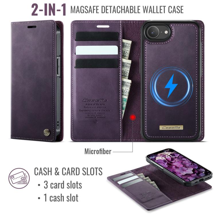 Funda de cuero desmontable CaseMe C49 MagSafe con bloqueo RFID para iPhone 16e (morado)