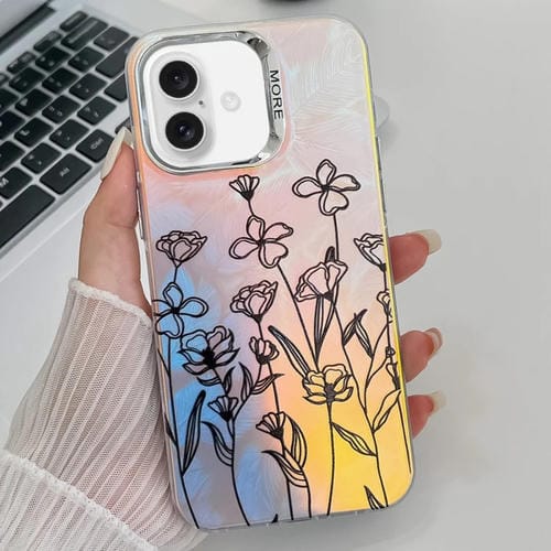 Funda para iPhone 16 TPU con Textura de Flor Láser y Galvanoplastia (Flores Dibujadas Ah3)