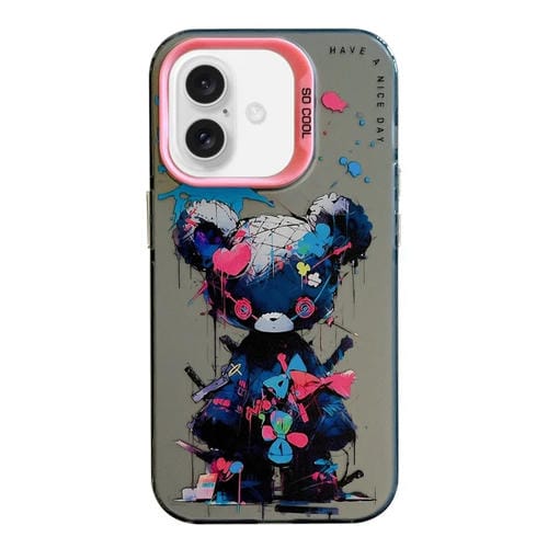 Funda para iPhone 16 Diseño de Animales Pintura al Óleo PC TPU (Oso Destrozado)