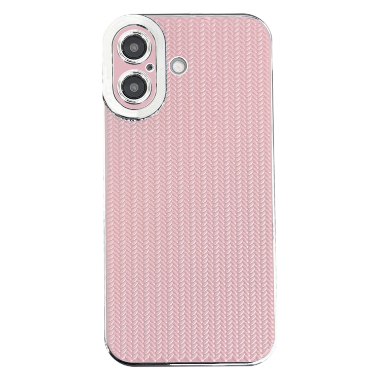 Funda TPU iPhone 16 Textura Granulada Borde Plateado Galvanizado (Rosa)