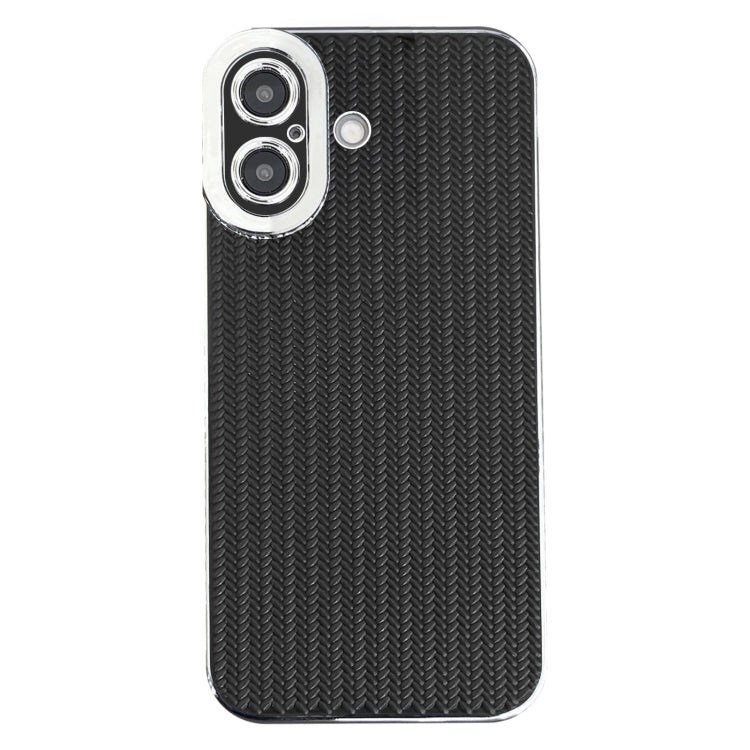 Funda TPU Textura Granulada Borde Plateado Galvanizado para iPhone 16 (Negra)