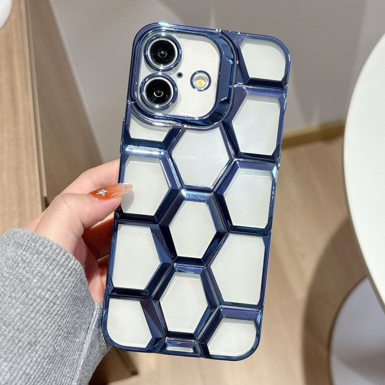 Funda para iPhone 16 Grabado Láser Galvanoplastia Diseño Panal de Abeja 3D TPU (Azul)