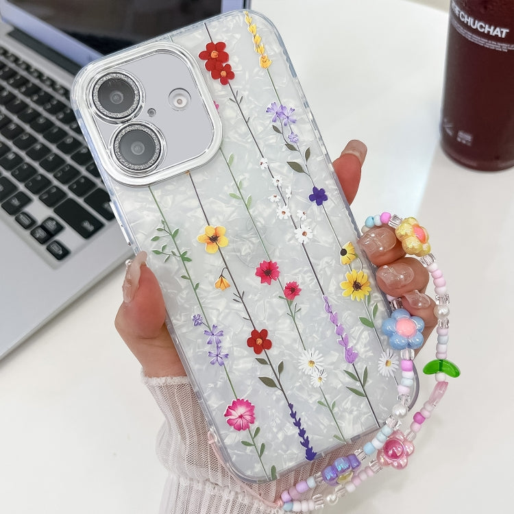 Funda para Teléfono TPU con Pulsera Textura Flores Galvanizadas iPhone 16 (Flor Silvestre Amarilla)