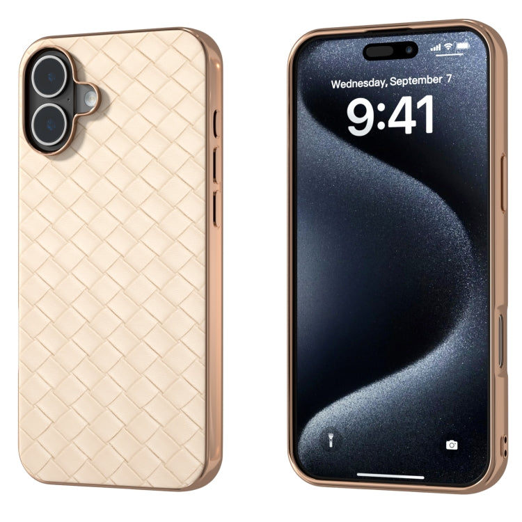 Funda de Teléfono PU Textura Tejida Marco Galvanizado iPhone 16 (Beige)
