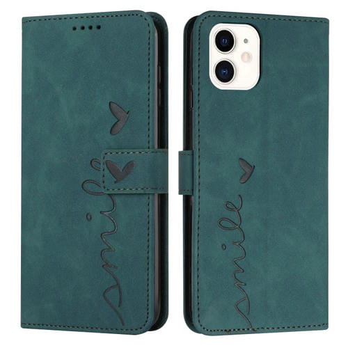 Funda para iPhone 11 Skin Feel Heart Pattern de Cuero para Teléfono (Verde)