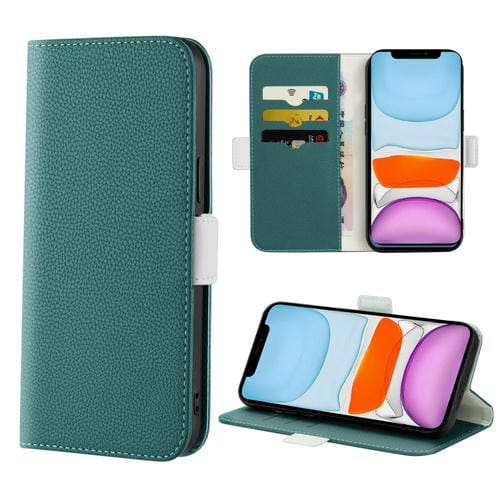 Funda para iPhone 11 Candy Color Litchi Texture de Cuero para Teléfono (Verde Oscuro)