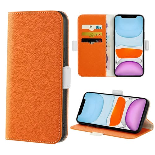 Funda para teléfono iPhone 11 Candy Color Litchi Texture de Cuero (Naranja)